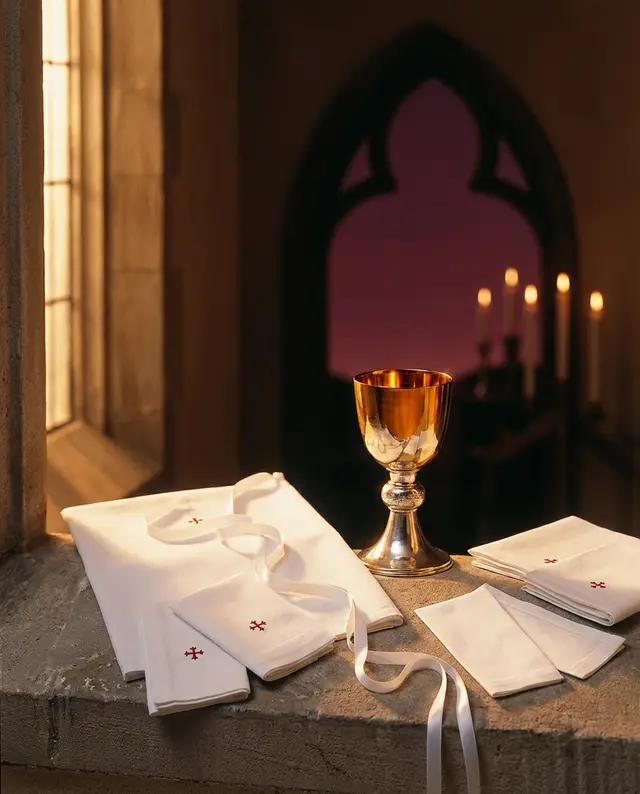 Altar Server Roman Monastic Albs – Front Wrap Albs Mass Linens Embroidered red or white cross on Amice, Corporal, Purificator & Pall. Liturgical Surplice