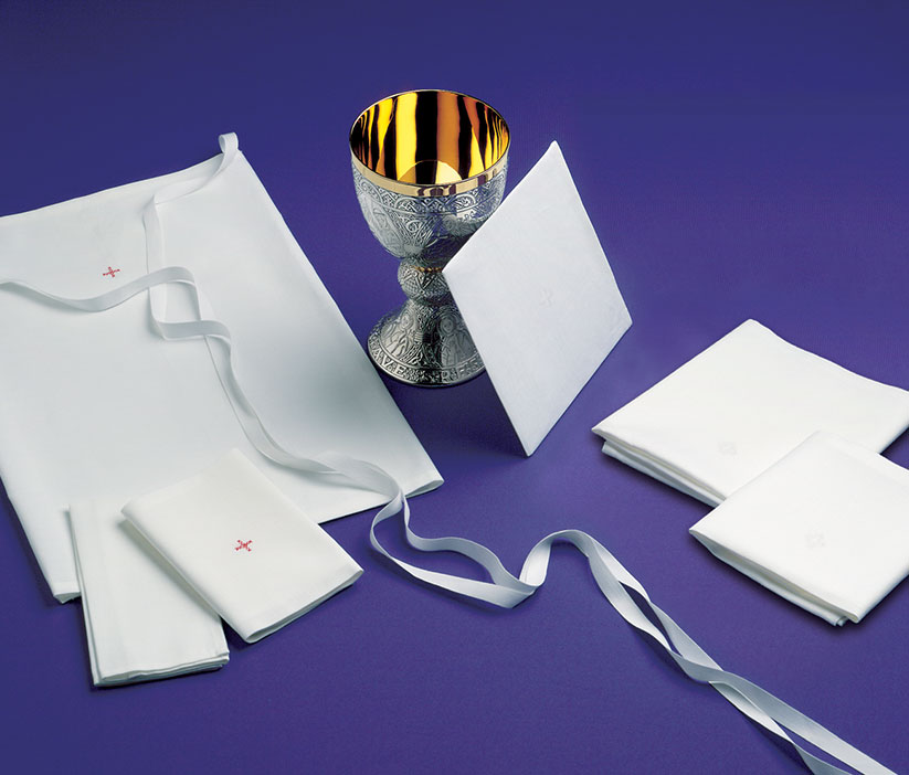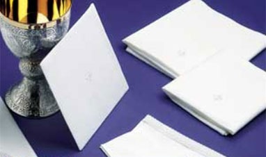 Embroidered red or white cross on Amice, Corporal, Purificator & Pall.